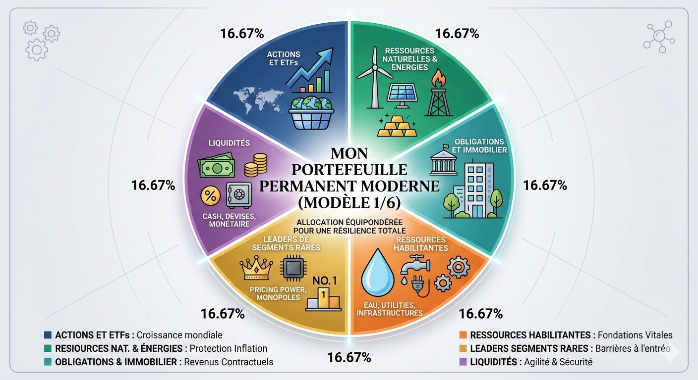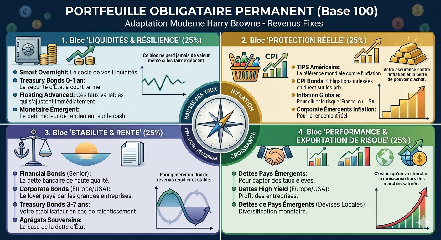 Un rééquilibrage en fonction des pertes ou gains est à faire une fois par an, on vend les gains pour racheter de ce qui n’a pas marché et que tous les actifs soient de valeur égales à nouveau. Par exemple si on a un actif qui est positif à 105 sur l’année et les quatres autres à 100, on va en vendre un bénéfice de 4€ pour que tous les actifs soient égaux à 101.
